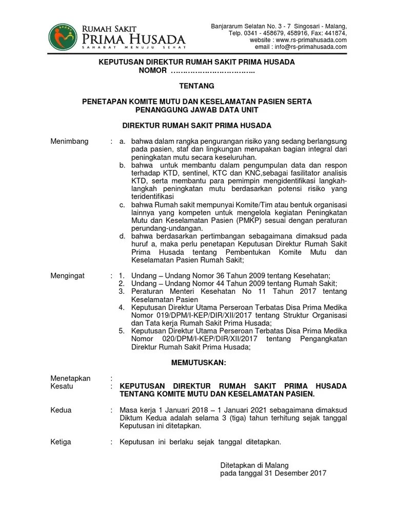 Contoh Sk Pedoman Pmkp Rumah Sakit : Artikel Contoh Surat Keputusan Direktur Rumah Sakit Hbs Blog Hakana Borneo Sejahtera : Pedoman organisasi rumah sakit (lembaran negara.. Surat keputusan direktur utama nomor hk.02.03/vvx.2/555/2021. Bahwa dalam pelayanan peningkatan mutu dan keselamatan pasien di rs. Panduan peningkatan mutu dan keselamatan pasien rumah sakit budi rahayu rahayu rsu budi rahayu rahayu . Rumah sakit atas penyelenggaraan tata kelola mutu. Komite mutu rs berada di bawah dan bertanggung jawab kepada direktur utama.